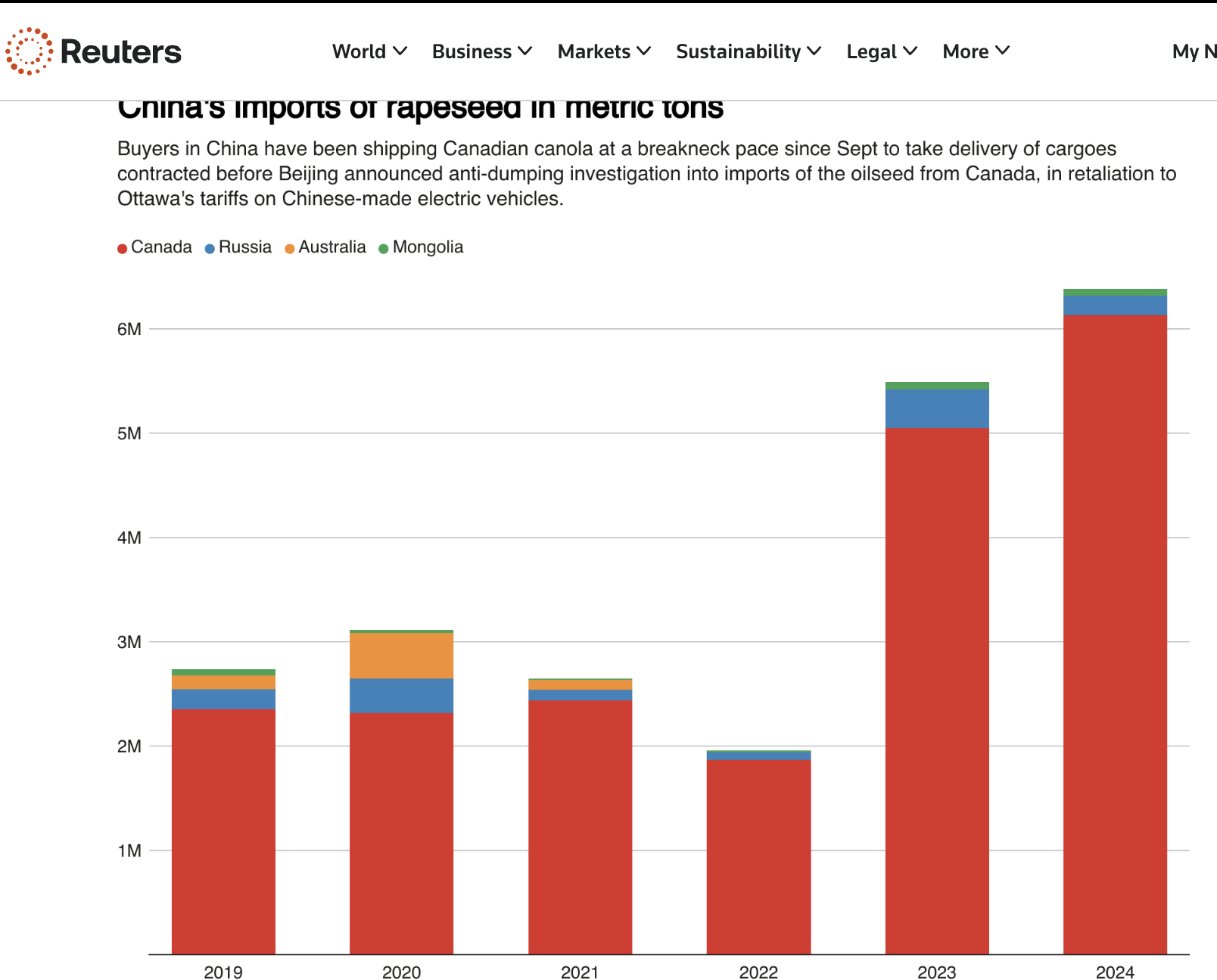China: EV vs Canola Oil and Meal. No appetite by politicians to deal with this. Do any of them know what's going on West of the ON/MB Border?