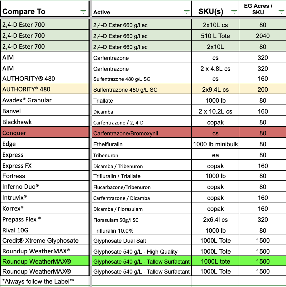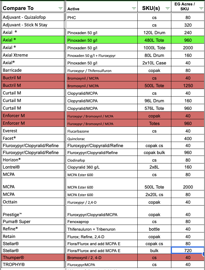 iFarm Ag Group has different suppliers and SKU sizes available and 17 actives between Graminicide and Broadleaf products. As noted above, the Bromoxynil components aren't available but we can cover most bases. Suggested acres/sku - follow the label. If you're not dialled in yet, give us a shot at a quote if you're into it.