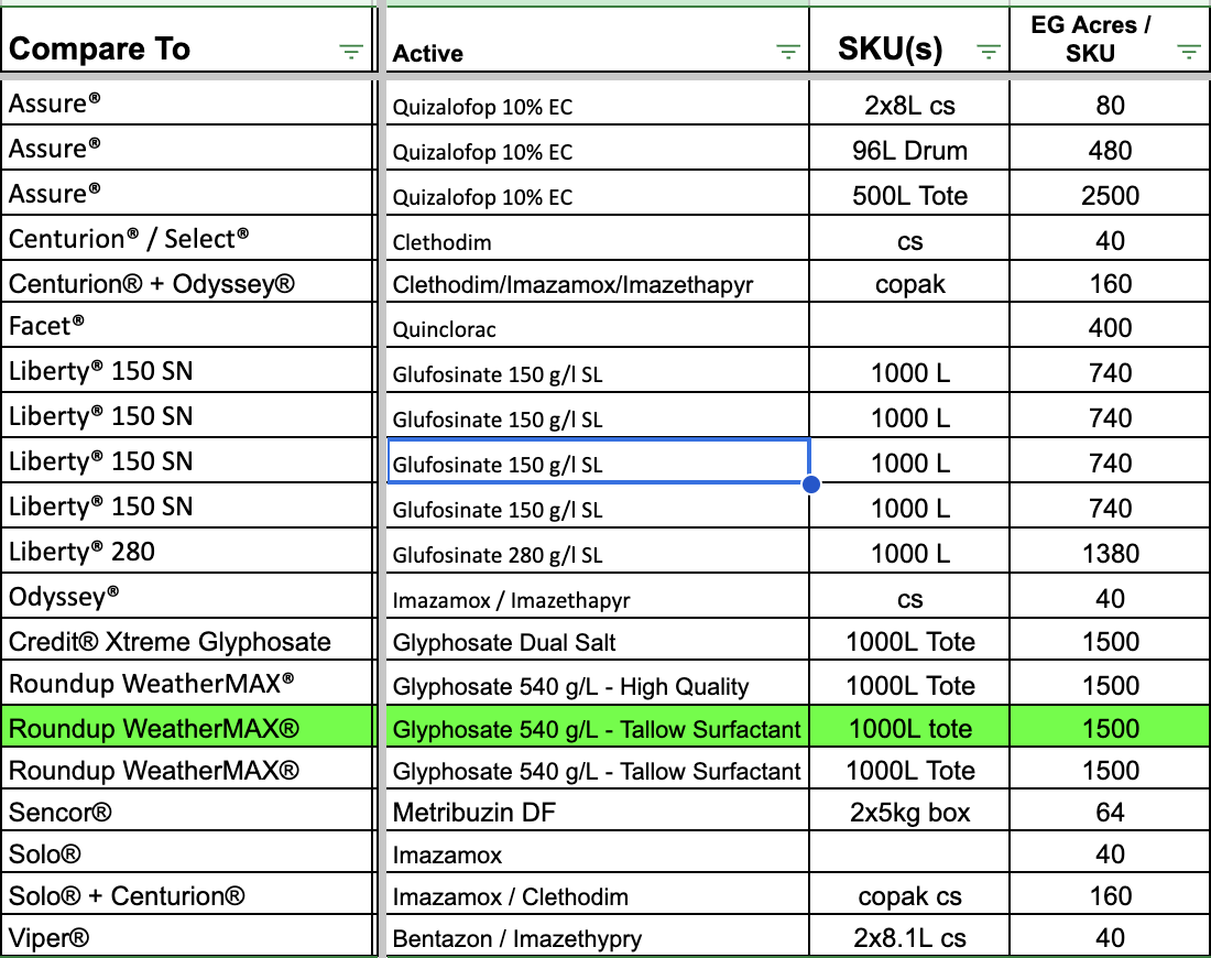 iFarm Ag Group has several suppliers. This year, one popular product is the new Glufosinate 280 active (roughly 1400 ac/tote). Saves time loading. Low foaming. Less product to haul around. Why not try a tote or two?